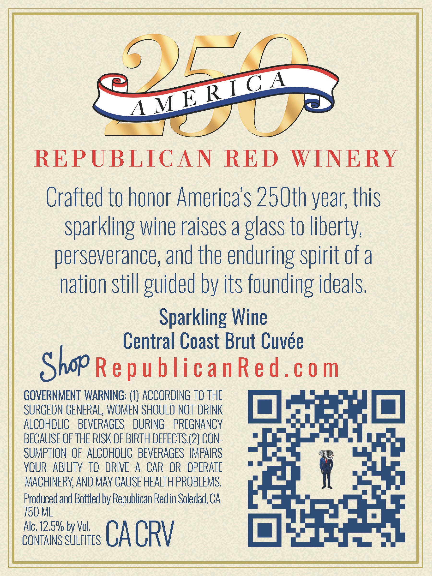 In 1776, a bold idea took root — that freedom belongs to the people, and government exists to protect it. Two hundred and fifty years later, that experiment continues. America 250 Sparkling Wine was crafted to honor this extraordinary milestone — the first of a limited commemorative release series celebrating 250 years of independence, resilience, and self-government. Bright. Refined. Unmistakably American. With lively bubbles and crisp clean finish, this sparkling wine was made for meaningful toasts and memorable moments. This is more than a celebratory bottle, it’s a tribute to the generations who built, defended, and strengthened this country as well as those who will carry it forward. Because America’s 250th isn’t just a birthday, it’s a reminder that what we celebrate, we must protect.
